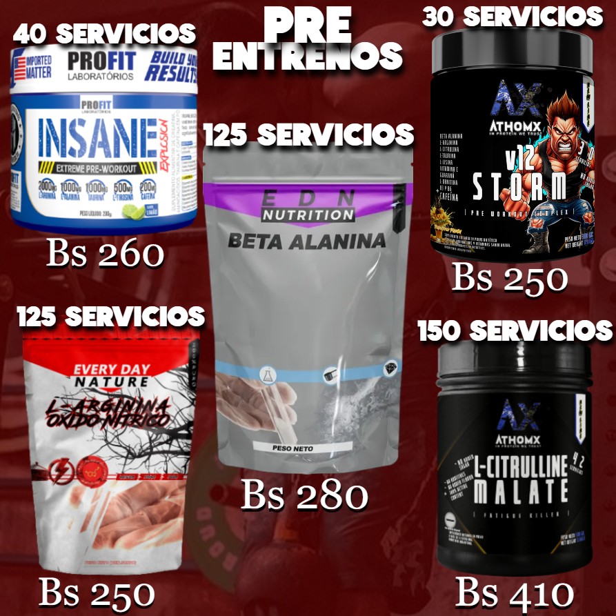 • PROTEINAS + PRE ENTRENO